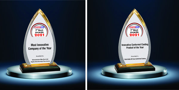 MacDermid Alpha Electronics Solutions is proud to announce that Electrolube’s manufacturing facility in India has won Most Innovative Company of the Year Award and Innovative Conformal Coating Product of the Year Award at the 7th EM Industry Awards. UVCL UV cure coating, a VOC-¬free option, was selected by a panel of well-¬known SMT experts for its ultra fast dry-¬time, environmental properties, low viscosity, ease of application and versatility for a wide range of applications. Electrolube is the leading manufacturer of specialist chemicals for the electronics, automotive, industrial manufacturing industries and much more.