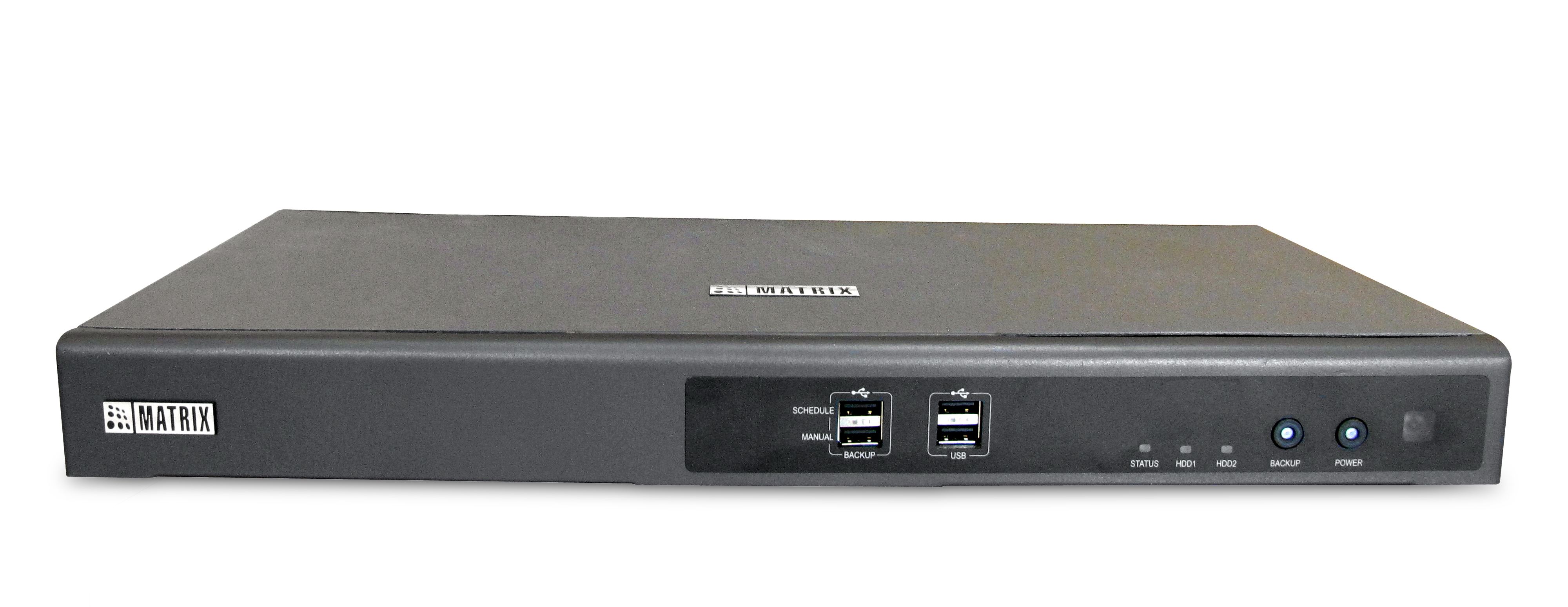 ng needs. This NVR along with recording and monitoring identifies irregularities and sends prompt notifications with event details in the form of SMS and Email to prevent any major losses. To safeguard the data, it allows performing scheduled or manual backup on a network as well as on USB. The search is made efficient by Date, Time, Recording type, Event and Alarm based leading to hassle-free playback. It supports 3G connectivity for wireless remote management and monitoring. It also comes with Matrix DNS Server support which helps to save the cost of buying a static IP for remote viewing. It comes with the Centralized Management Software which fulfills the need of large enterprises to manage and monitor all the cameras connected to NVRs remotely and centrally.